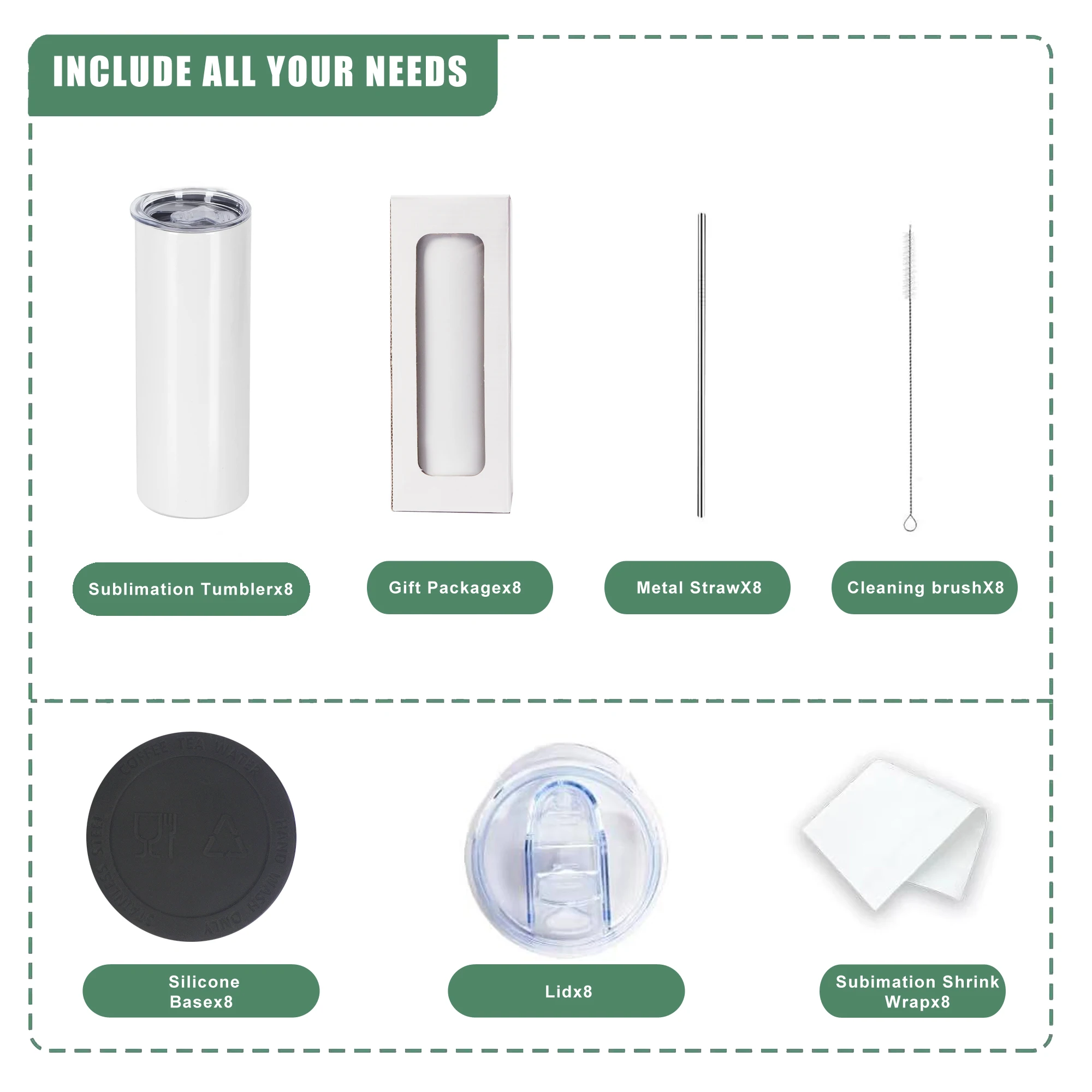تشمل العبوة: 8 قطع من الأكواب الضيقة ذات التسامي المستقيم بوزن 20 أونصة مع شفاطات من الفولاذ المقاوم للصدأ وغطاء مقاوم للرذاذ في هذه العبوة، يمكنك شراء الأكواب كبيرة الحجم لأكواب فريدة من نوعها لأفراد عائلتك أو أصدقائك الذين تهتم بهم حقًا.